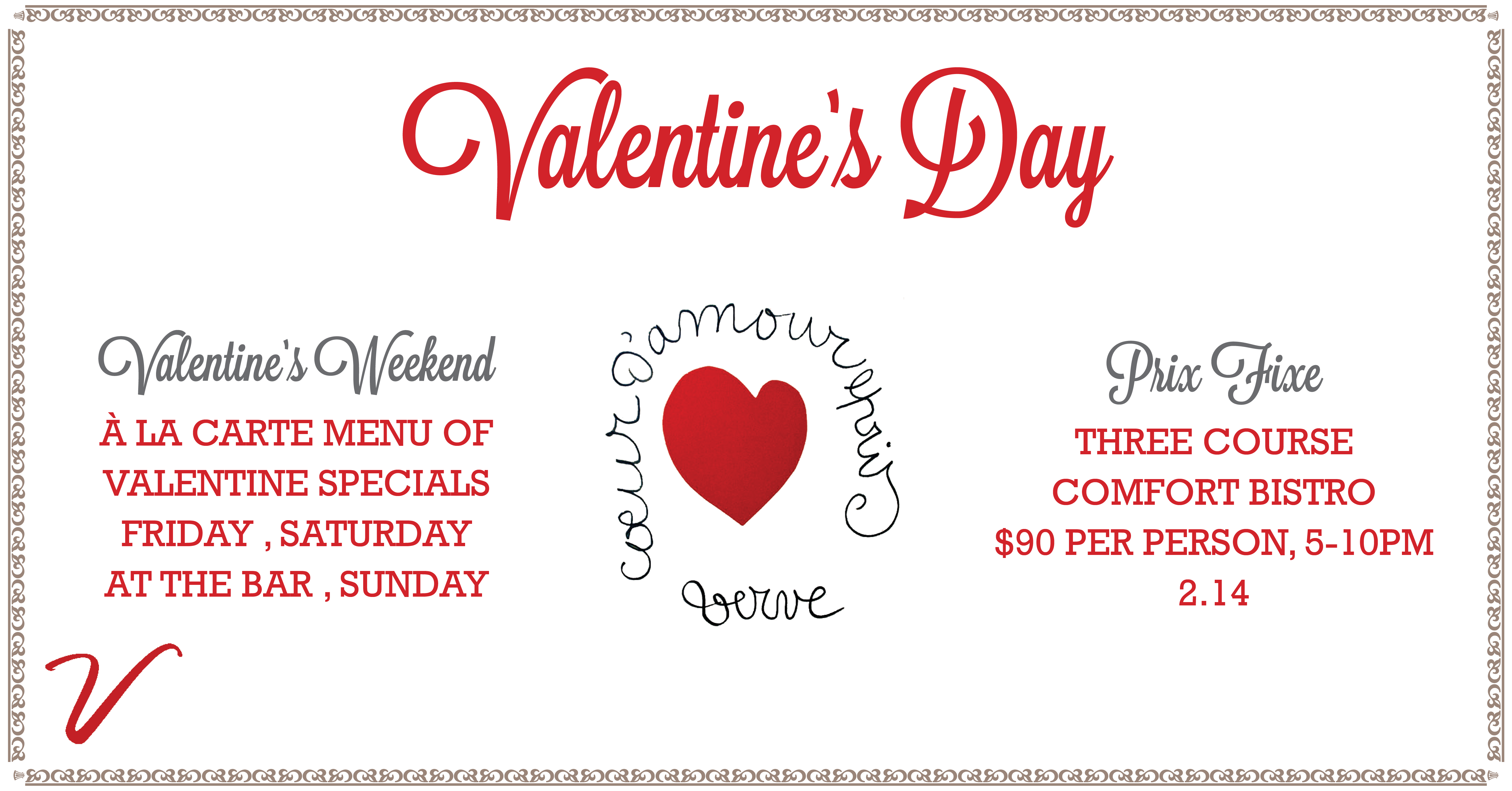 Celebrate Valentine’s Day all weekend long at Verve Bistro, Bar & Lounge in downtown Somerville — one of Central NJ’s most beloved dining destinations. Join us for an intimate, elegant, and delicious experience featuring our Valentine’s Prix Fixe Menu on the 14th and a Specialty À La Carte Menu, available Friday, February 13th through Sunday, February 15th. Our chefs have crafted a seasonal, romantic menu inspired by Provençal French cuisine, butcher‑aged steaks, and Verve’s signature warmth. Whether you’re planning a cozy date night or a celebratory evening out, Verve sets the perfect mood with artisanal cocktails, an award‑winning wine cellar, and our vintage Soho‑style upstairs lounge.